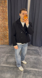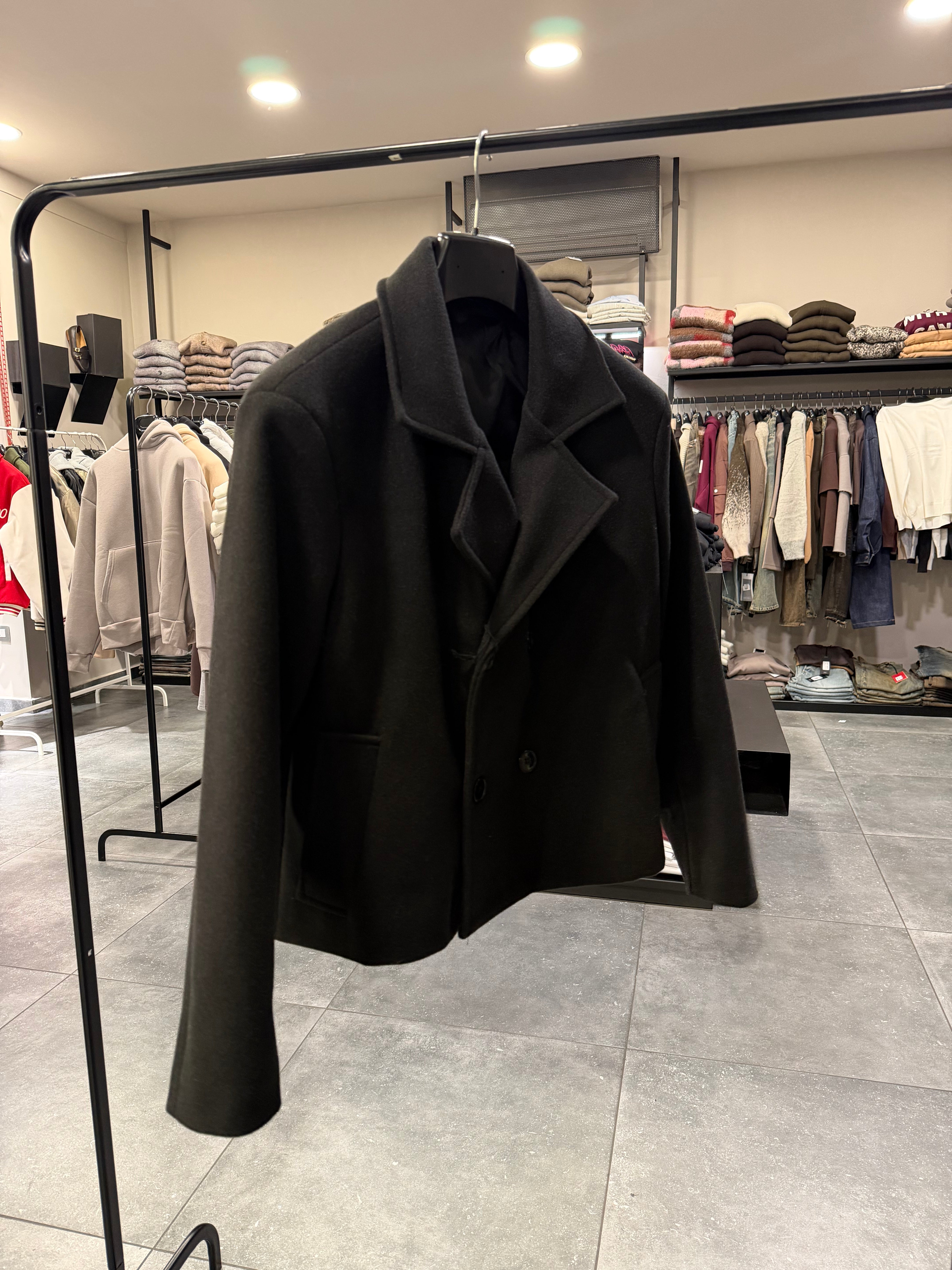 il cappotto crop fit è disponibile dalla s alla xl.